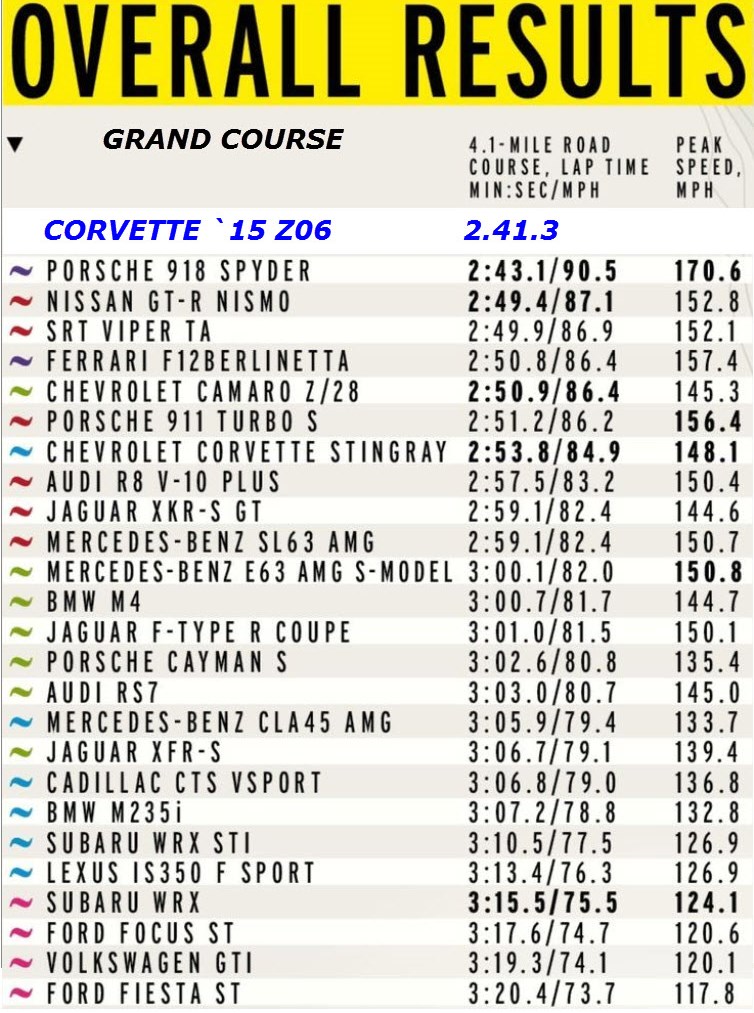 As if the Z06 listed specifications weren’t impressive enough, GM went out to validate their claims through several track runs, even crashing a Z06 in the process. If anyone was going to put the Z06 through its paces, Jim Mero Aand GM were sure to accomplish that. Mero’s run at Virginia International Raceway was probably the eye opener of all runs for the Z06, pulling in a track record of 2:41.3, a record previously held by the Porsche 918 Spyder (2:43.1).