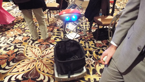 The second robot was another “personal assistant”-style robot that follows you around. He is controlled with a small remote control and will always stay an exact distance behind you. You can even take him shopping with you and use the attached basket for your groceries or other items. Take him with you to the park and let him carry what you need, keeping your hand free for other tasks, such as controlling your pet on their leash.