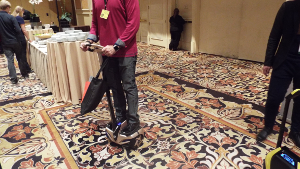 Along the same lines, an almost unicycle-style “bike” was maneuvering around with a minimum of effort on the part of the “rider”. This thing is entirely controlled by foot movements, and foot pressure forward, backward and to the side was all that was required to steer.