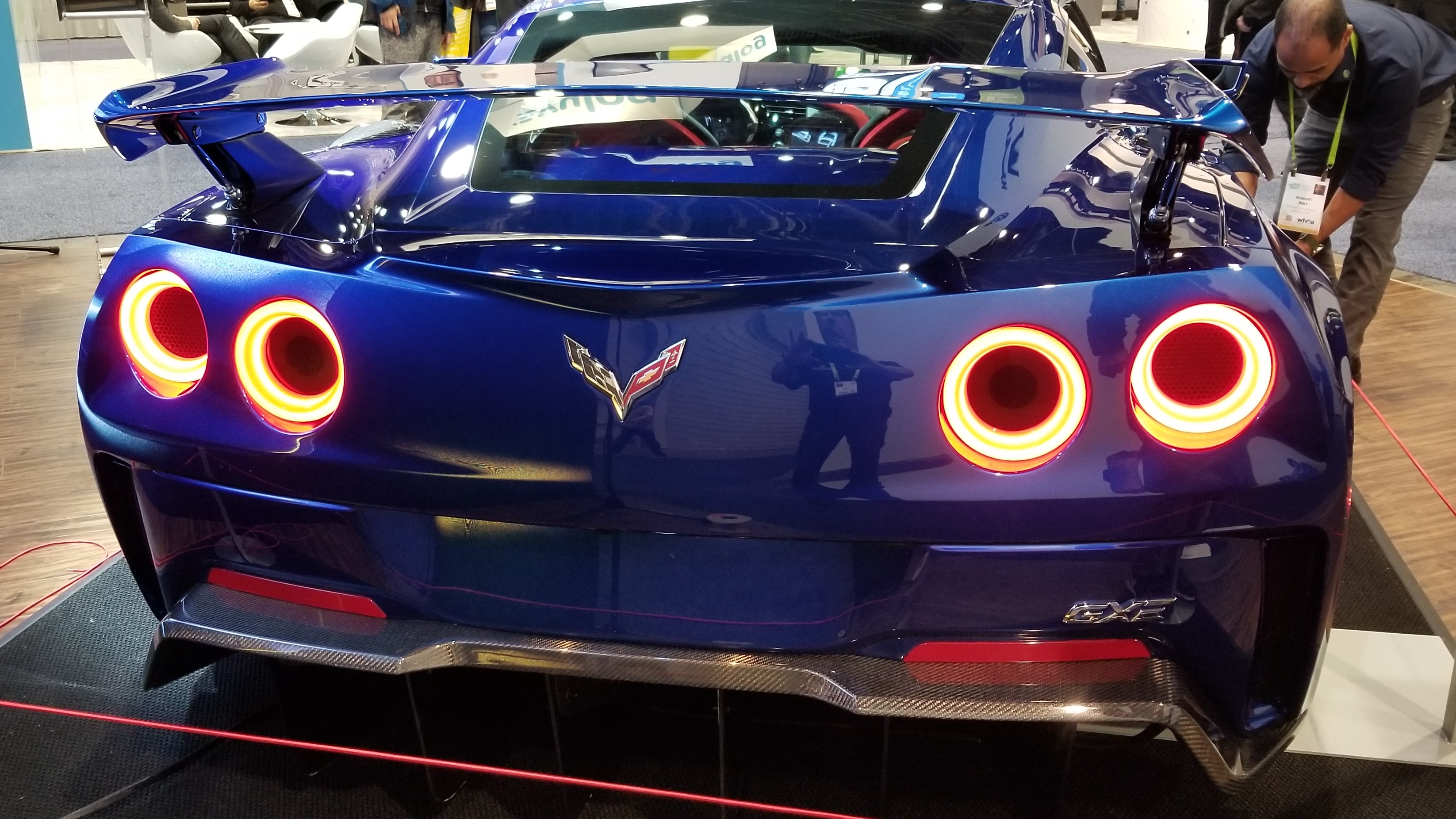 The back of this GXE allows a good look at something traditional corvette lovers have been hoping for for some time; round taillights. Personally, I like the newer design and think this version mimics the Nissan GTR just a bit, but I do like the spoiler.