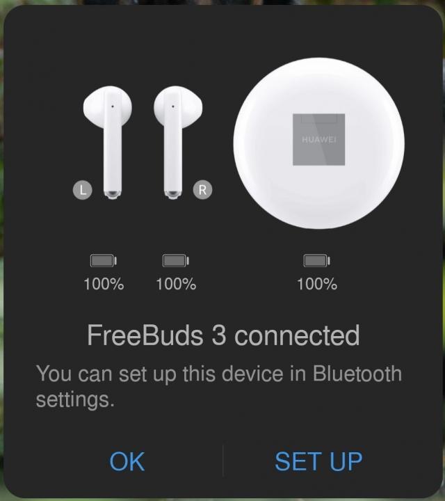 The power button on the right side is pretty much impossible to photograph and the only way we found it was through pressure where it showed itself. Depress it for two seconds to start things off where the Freebuds 3’s are immediately recognized and a pop-up appears which, as we spoke above, is the ‘Pop Open Instant Pairing’.