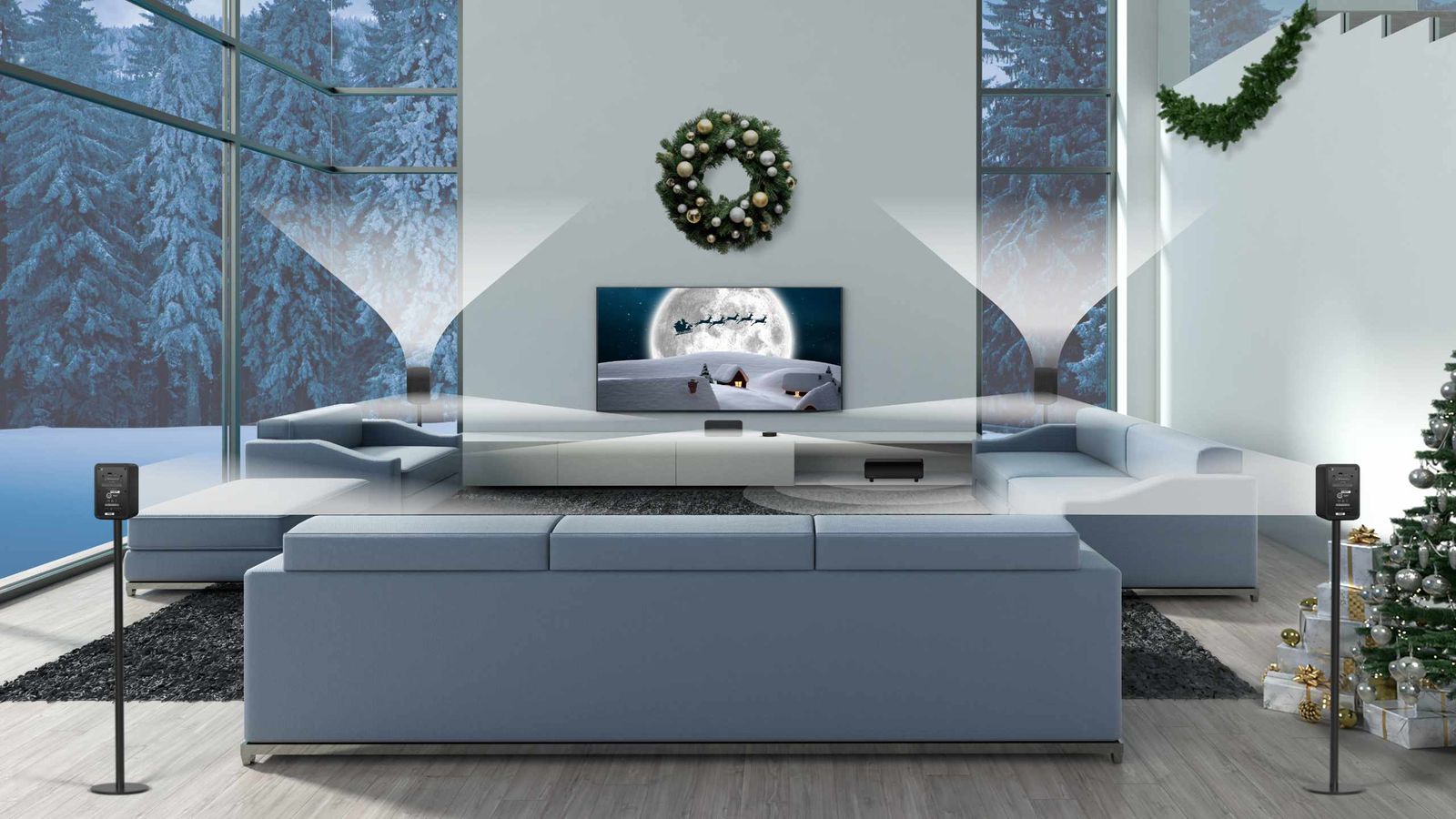 It takes longer to unpack the Platin Monaco 5.1.2 than it does to set it up. Plug the HDMI cable to your ARC/eARC HDMI port of your TV and into the back of the SoundSend Transmitter. Plug in the transmitter. Arrange and plug in your speakers and subwoofer and enjoy! The back of each speaker even has a small decal which states the preset location of each (FLFLH/FRFRH/RS/LS/C) It is really that simple and one can simply tuck the SoundSend transmitter away out of sight behind the smart TV.