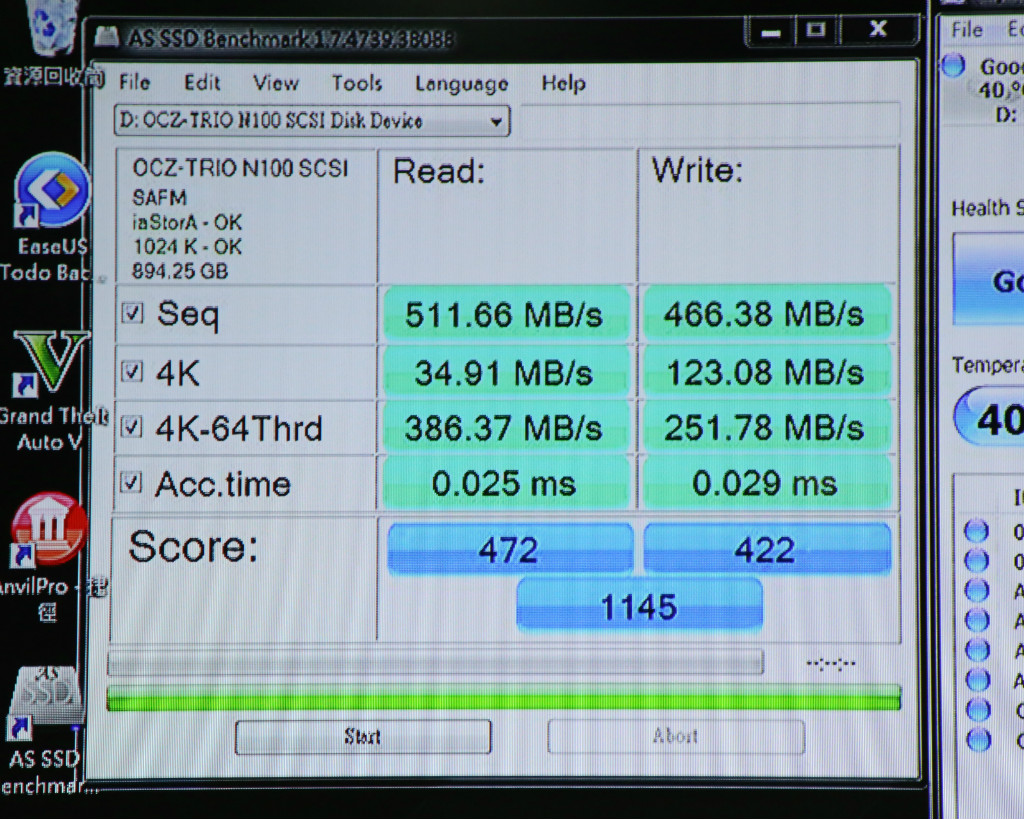 Below you will find preliminary benchmarks for the Trion 100, with ATTO, Crystal Disk Mark and AS SSD: