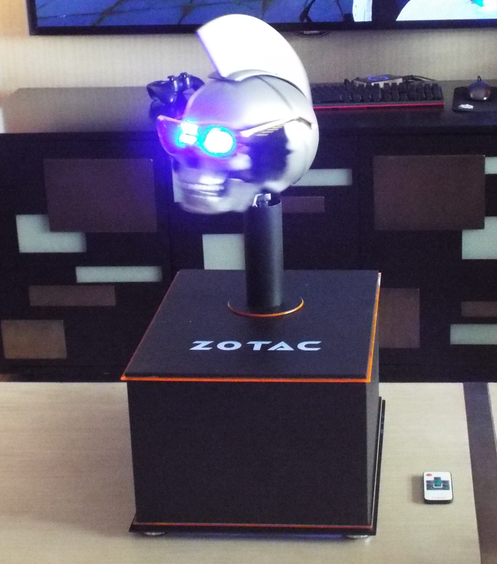 The coolest thing by far on display were a pair of custom-modded ZBOX Sphere OI520 mini-PCs. The first mod has become a wicked looking skull that can rotate back and forth, as well as a lower jaw that opens and closes (this is done using a small remote). Sunglasses and sideburns are nice finishing touches to the mod. The second mod took the form of a StarWars-style Death Star. These mods are both fully functional mini-PCs.