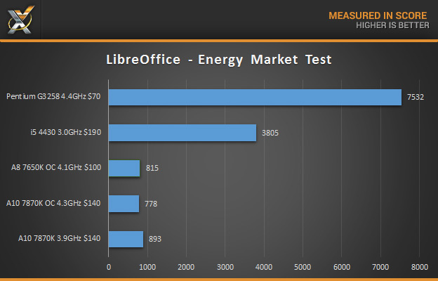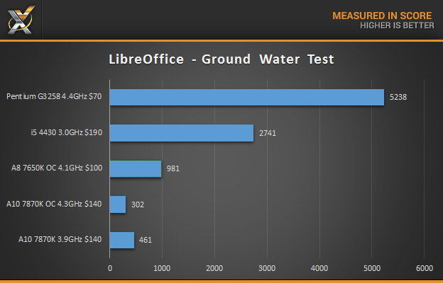 LibreOffice shows us how much better these AMD CPUs do when HSA is properly coded for. Intel’s chips get absolutely demolished here. If you use this application and do any sort of heavy lifting with it the choice is made VERY clear here.