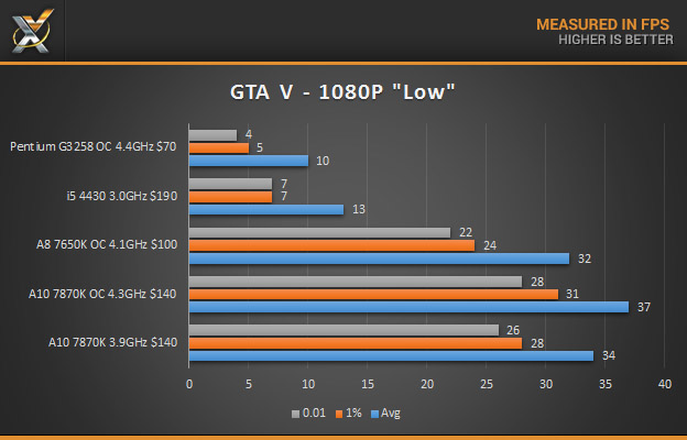 GTA V shows us the difference between playable and unplayable, from the i5 and Pentium. They are both quite limited by their IGPs (We’d imagine Broadwell or Skylake would fare better but there are currently no Skylake chips priced below $200 now)