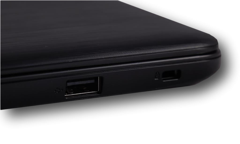 On the right side of the notebook there is a Kensington lock and a USB 2.0 port.