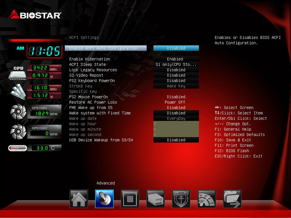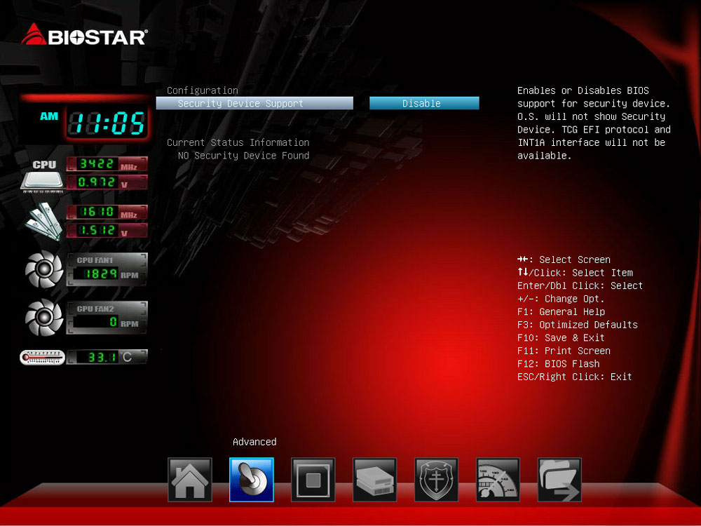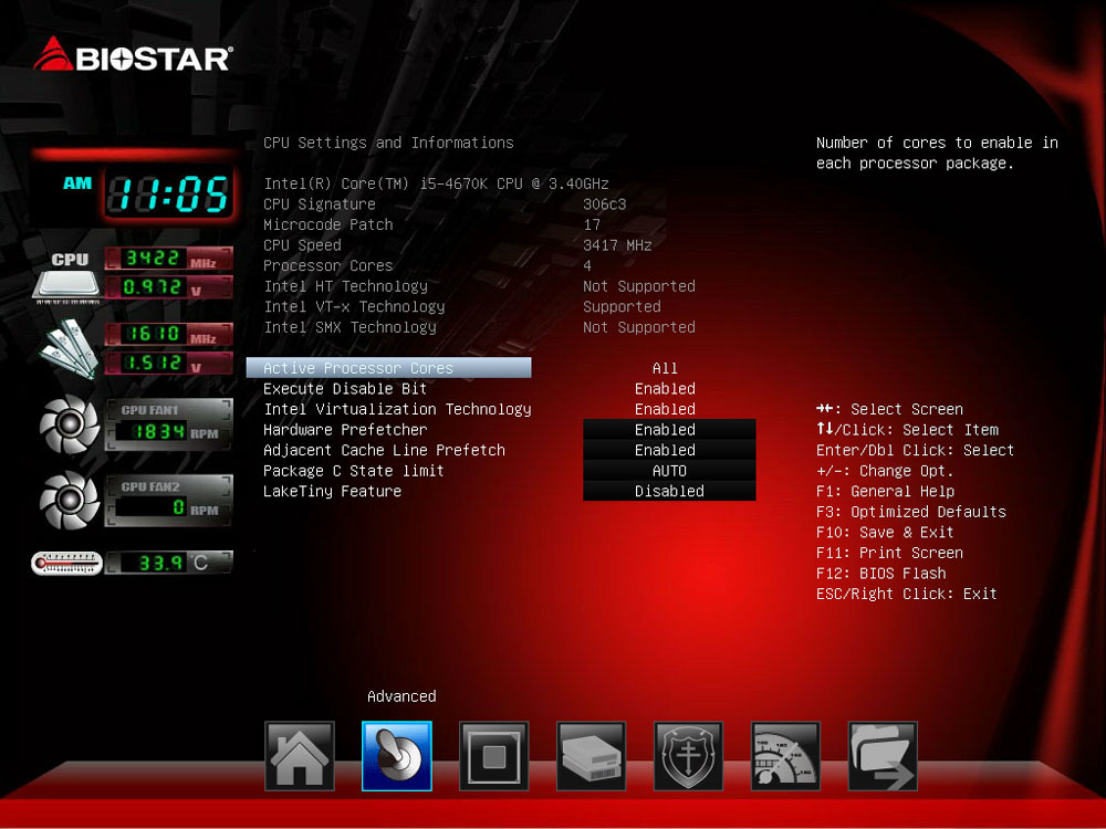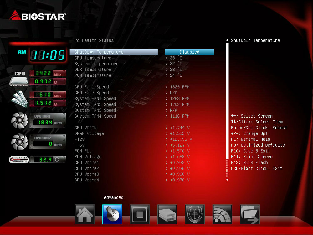 Upon our first power on, I went straight into the UEFI Bios to ensure everything was set as it should be. The very first thing I noticed was that in comparison to other UEFI Bios that I have used before, the Biostar Bios was a bit… unpolished. It’s very basic, however it is a bit more intuitive than the older Bios systems, that forced you to use a keyboard to navigate.