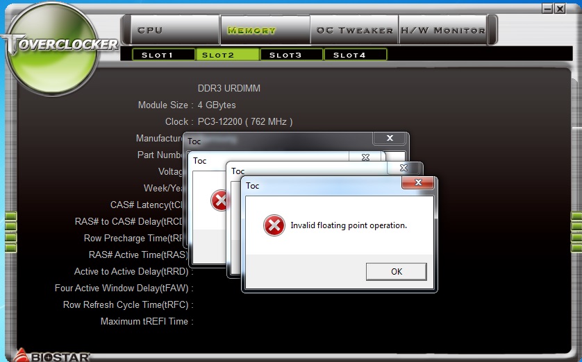 Next up we have the T-Overclocker application, which is Biostar’s Windows based overclocking application. While this software is capable of achieving an overclock on your PC’s hardware, I would definitely recommend you use your Bios settings instead of any overclocking software. Not to mention, the T-Overclocker seems to be a bit buggy, as I was getting some errors when trying to view my memory settings.