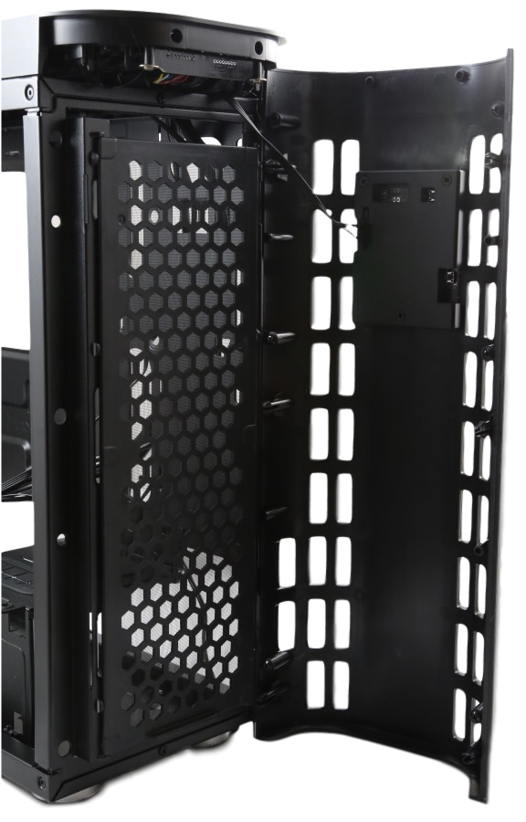 The side panels are straight forward. On the right side (or rear of the motherboard) you will find a solid side panel, which you can flip over to the other side if you so wish. Actually, this gives you a good idea of the difference between the basic Pandora compared to the Pandora Window. The Windowed side panel is a basic square shape that extends down on the right hand side, probably to help expose your graphics card while hiding your power supply.