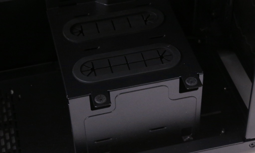 Underneath of where the power supply will be mounted, you will see four rubber pads that the it will rest on. Keeping in mind how snug this chassis is, you will see that our power supply just fits.