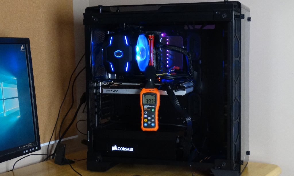 The specs of the MA610P say a max of 35 dBa, while running our sound test we had the unit dialed in at 39.7 dBa, which yes is above the advertised 35dBa Max, but remember those specs are on the fan and don’t account for the noise created by both fans working together through the radiator.