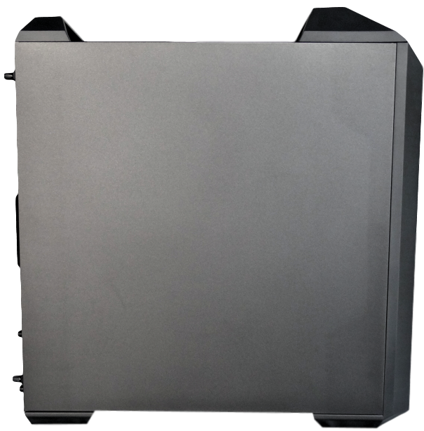 First thing we always want to do is pop off the component-side panel to see what we actually have to work with. The panels are fairly flexible steel panels which look identical. Undoing the two thumbscrews you’ll notice that they have a certain stand-off and are meant to stay with the panel which is awesome because you don’t have to worry about misplacement. If you slide the panel directly backwards you’ll notice if you release it slowly that it falls back to about a 5-10 degree angle and just sits there.