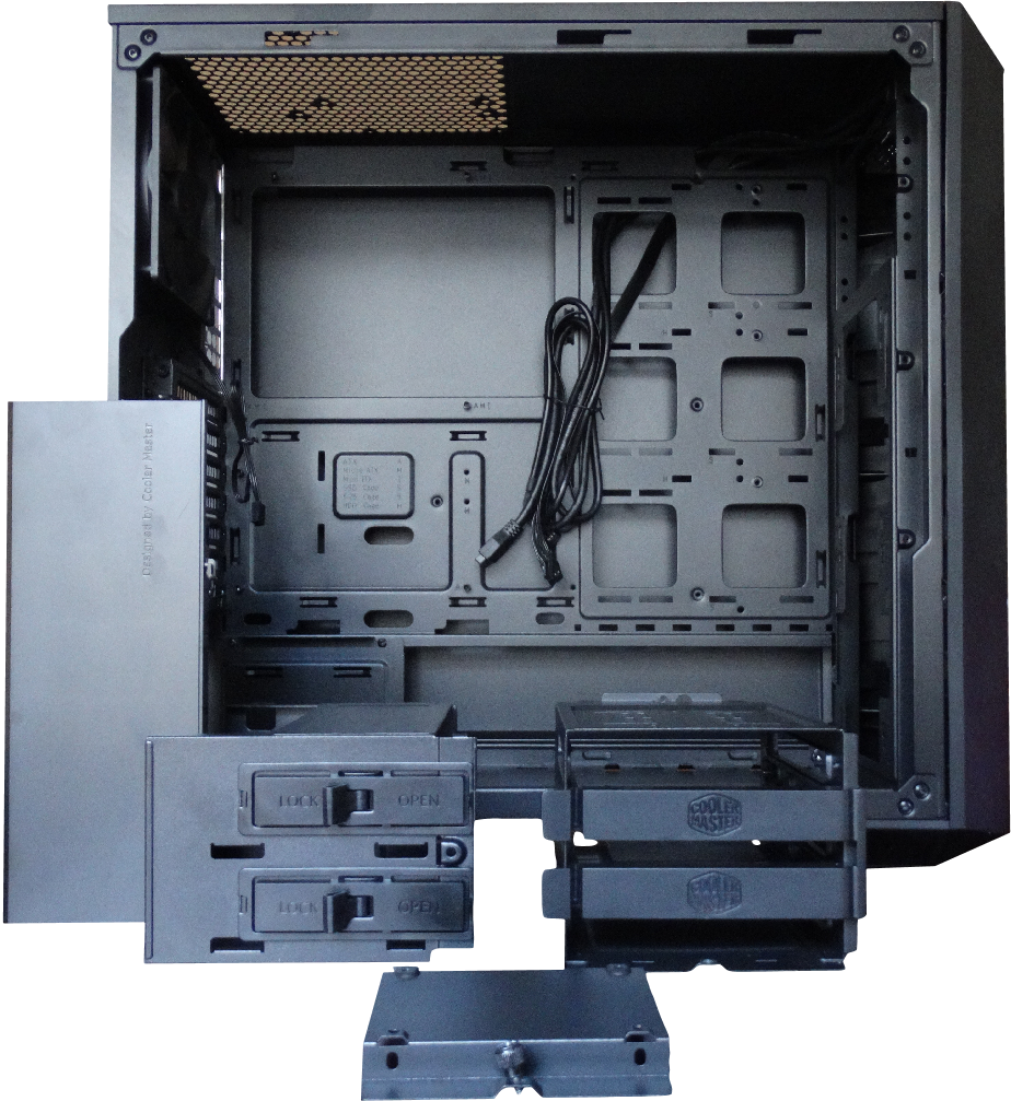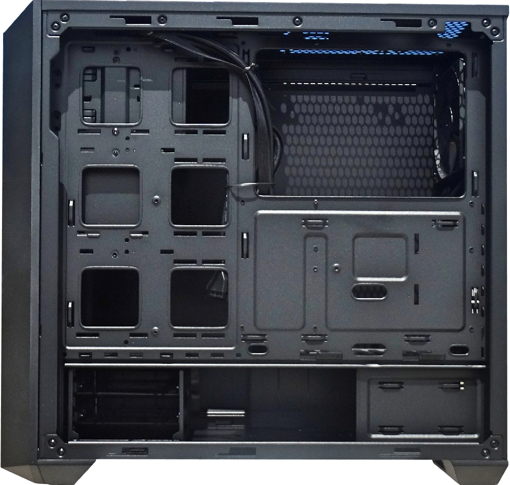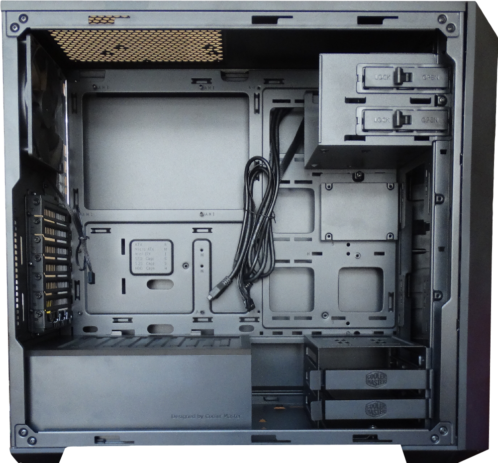 As you can see the accessories removed the chassis is completely open for you to adapt and build to fit your components and aesthetic ideas. The Masterbox 5 will house an air cooler with a max height of 167mm, liquid cooling up to 280mm (360mm with bracket), VGA up to 410mm. However, choosing some options will limit others. We will get into that in more detail a little later on.