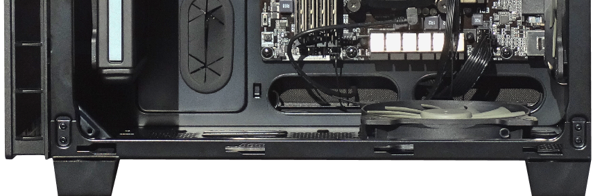 As we make our way down the rest of the build is pretty uniform with a regular case and there is not too much to say about it. The bottom of the case has support for up to three 120 fans or two 140’s. There is also enough clearance for low profile radiators to run your cooling units down on the floor.
