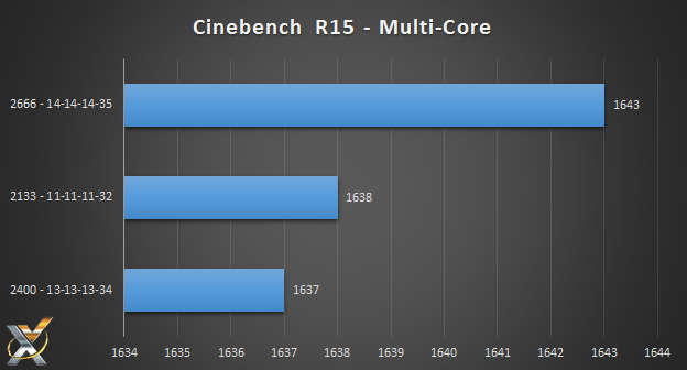 As we can see Cinebench doesn’t seem to care too much about RAM speed as it performs very similar with all three configurations with the highest scoring configuration only scoring 6 points higher than the lowest.