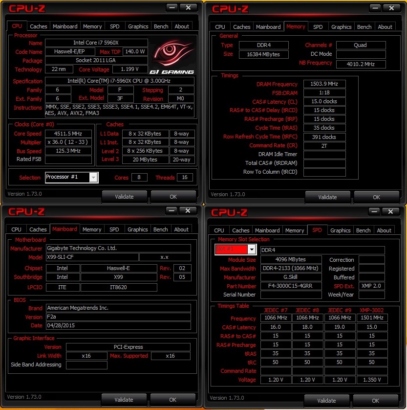 | CPU: | Intel Core I7-5960X OC 4500MHz |