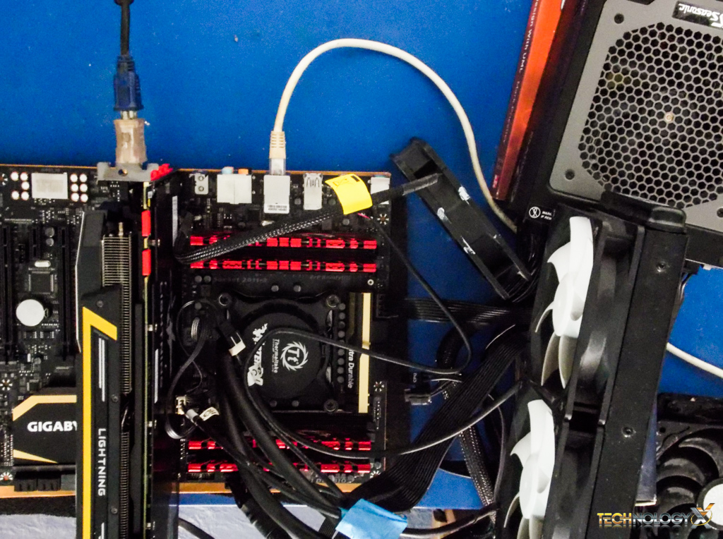 As seen the components are laid out on a table, this is our preference as we use this method to test many parts without the hassle of a case set up and in preparation of LN2 testing. A large thank you and a great amount of appreciation goes out to those manufacturers who help make this build possible, notably Thermaltake, G.Skill and Gigabyte. All components used can be purchased at most stores, as well as online.