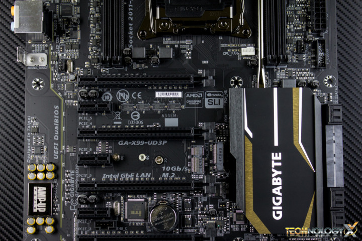 The Gigabyte X99-UD3p also features native support for up to 4-way SLI or CrossFireX configurations, thanks to its X99 chipset. Through the PCIe 3.0 slots on the motherboard we get up to a combined 320GB/s of total bandwidth available.