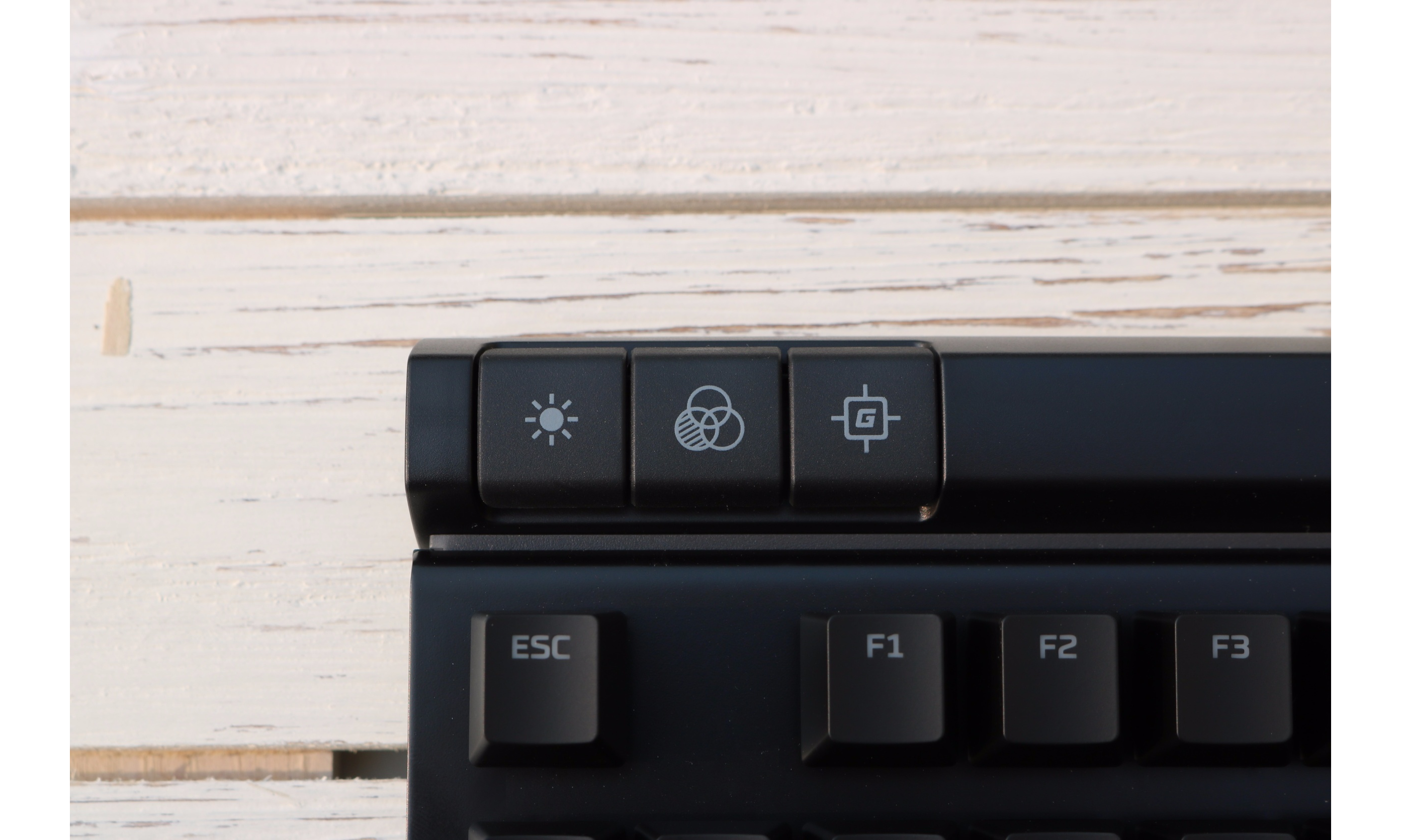 Just to note HyperX has announced that they are releasing an RGB version of the Elite later this year. On the left side of our Alloy Elite are the brightness, colour scheme and anti ghosting quick keys. There are three stages of brightness with the fourth being no light at all. The lighting effects are as follows: Static, breathing, light on key-press, explosion effect, left to right wave and custom switch lighting where you choose which keys are illuminated.