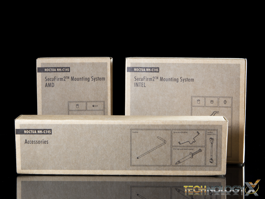The NH-C14S comes with a single 140mm NF-A14 premium PWM fan, and features support for a second, which is sold separately. The cooler also uses Noctua’s SecuFirm2™ mounting system which features support for Intel’s LGA115x, 2011/2011-v3, and AMD’s AM2/AM2+, AM3/AM3+, FM1, FM2/FM2+ sockets.