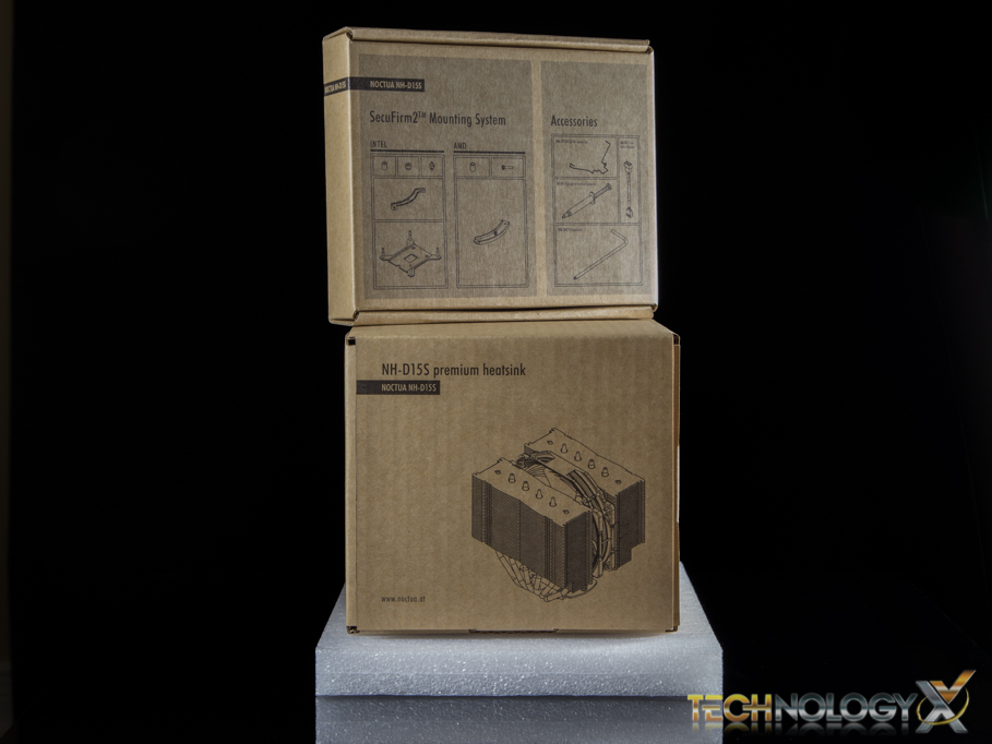 Inside the box you will find the mounting kit, brackets and accessories packed neatly to the right hand side and the NH-D15S on the left with the fan pre-installed.