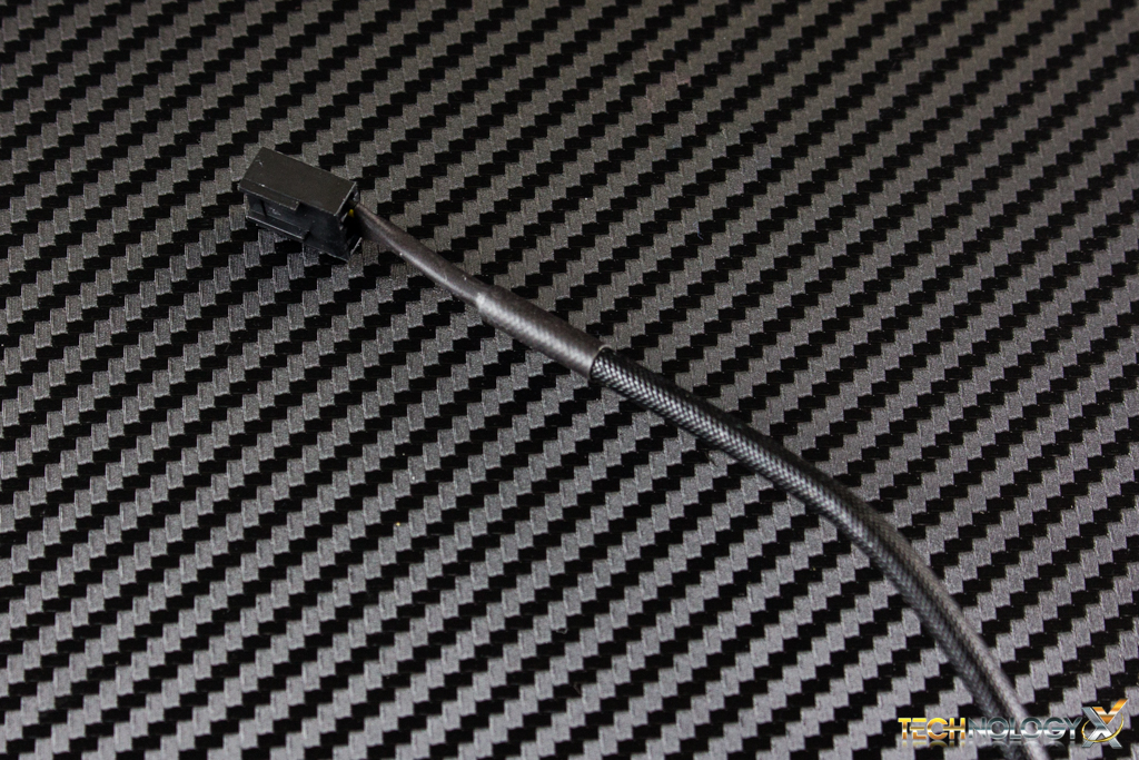 The fan is attached to the cooler using metal wire clips, which slip through the fans mounting holes. They also feature some nice rubber padding around the corners to help with noise dampening. The fan’s 4-pin PWM power cable is sleeved with an all black dimpled rubber, which has heatshrink tubing at both ends to hide the colored cables inside. This gives it a very nice and clean look.