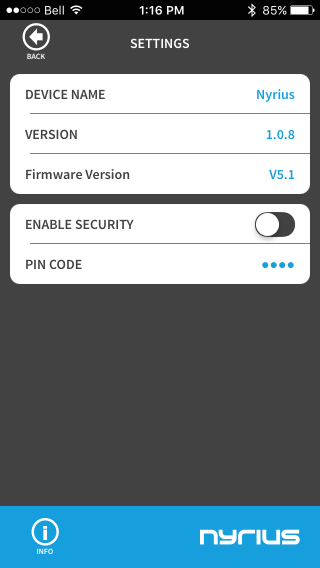 The Nyrius Smart Outlet features bluetooth 3.0 and has a wireless range of 33 feet. This we question a little bit, as we found the range to be flaky at times, intermittently connecting to the smart outlet. The outlet itself is a three prong 120 volt 60 Hz standard AC outlet, with a current capacity of up to 15A.