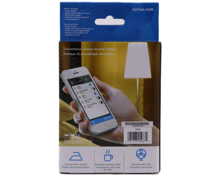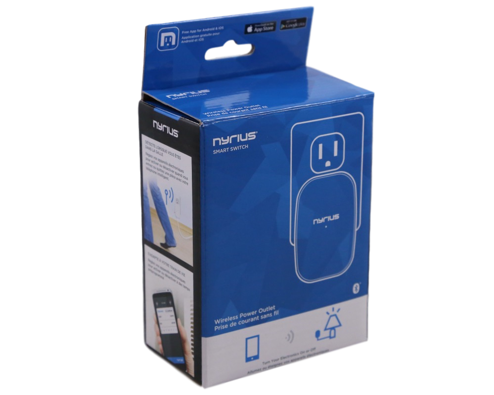 Next up is the smart outlet from Nyrius. This smart outlet allows you to connect any thing with a power cord and control it via your smart device. It is an easy way to quickly switch on and off that light, or have them automatically turn on when you are near by.