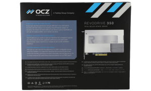 The RevoDrive 350 comes in a larger package, similar to which you find a motherboard packaged in. The PCIe SSD itself is stored in a plastic housing to protect the drive.