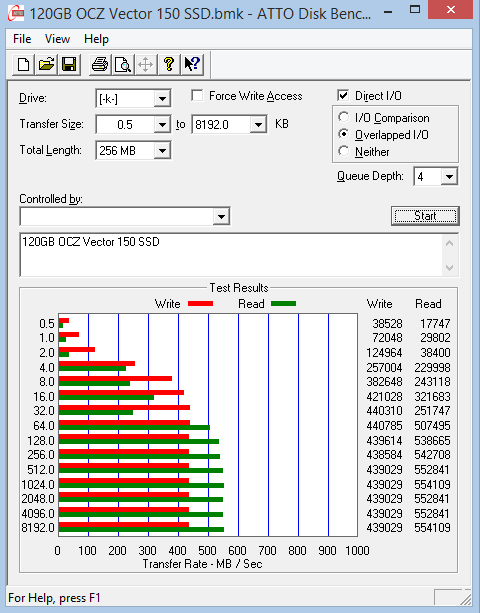 The ATTO Disk Benchmark measures storage performance with various transfer sizes and test lengths for reads and writes. Several options are available to customize performance measurement including queue depth, overlapped I/O and even a comparison mode with the option to run continuously. ATTO is rated to test RAID controllers, storage controllers, host adapters, hard drives and SSD drives.