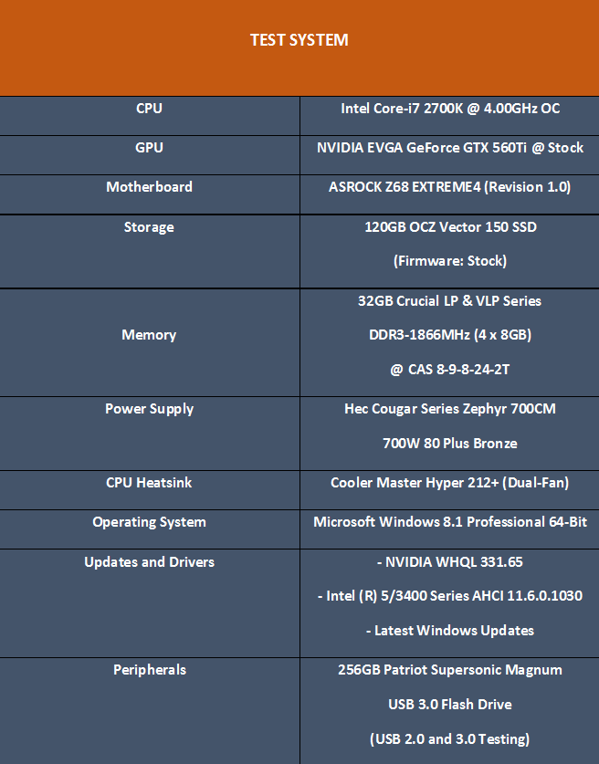 The system configuration for testing the OCZ Vector 150 SSD will be Intel-based: