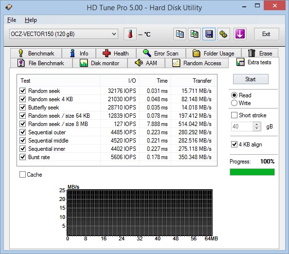 The 120GB holds its own, and at peak numbers that you can check on OCZ’s page, it gets close to numbers presented by SanDisk’s Extreme II 240GB – one of the best SSDs out right now – with the 240GB Vertex 150 especially closing the gap. Still, sustained 4k speeds and read/write speeds of 515MBps/415MBps are nothing to scoff at and certainly help cement the 120GB Vector 150 as one of the best SSDs in that price range.