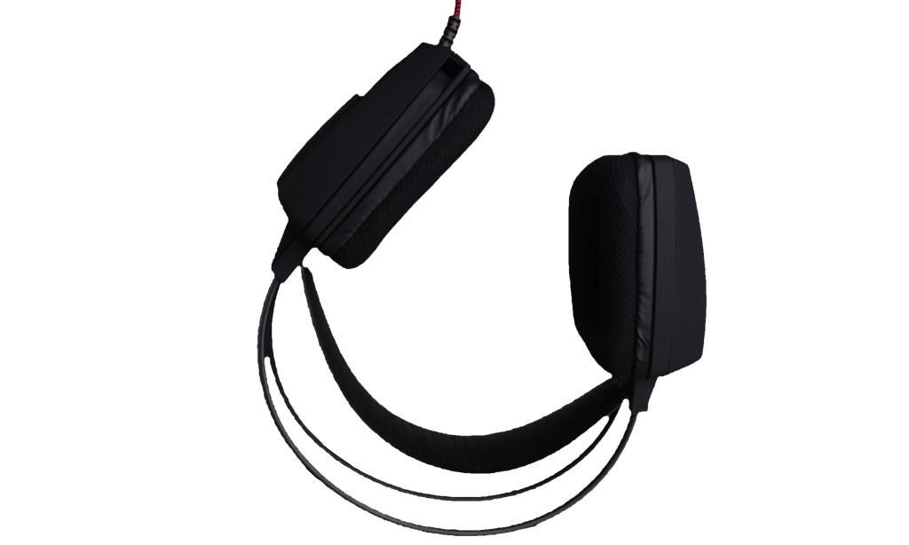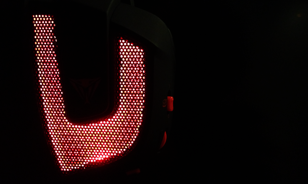 The LED switch toggles the red light located behind the headphone mesh on each side. They give off a powerful red glow that give the headphones a fantastic appearance but don’t serve any performance value, 100% pure aesthetic.