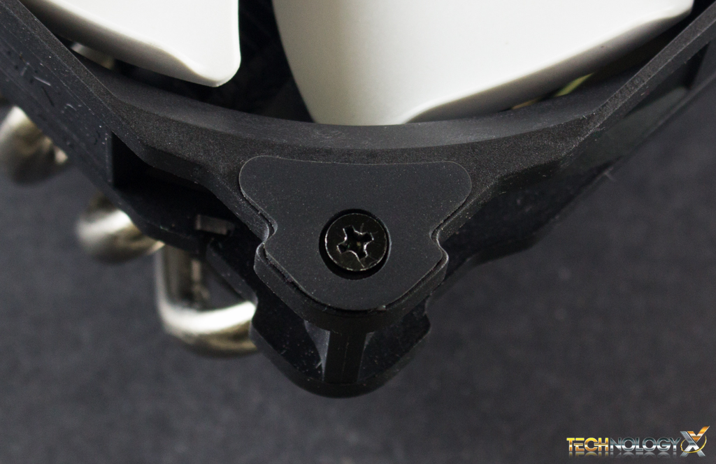 The fan is attached to the heat-sink with custom fitted, partially threaded screws. Usually, this would result in a loose fit, due to manufacturing errors. But thankfully this is not the case as the fan fits snugly to the cooler, and the rubber padding on each corner of the fan ensures there will be virtually no added noise due to vibration.