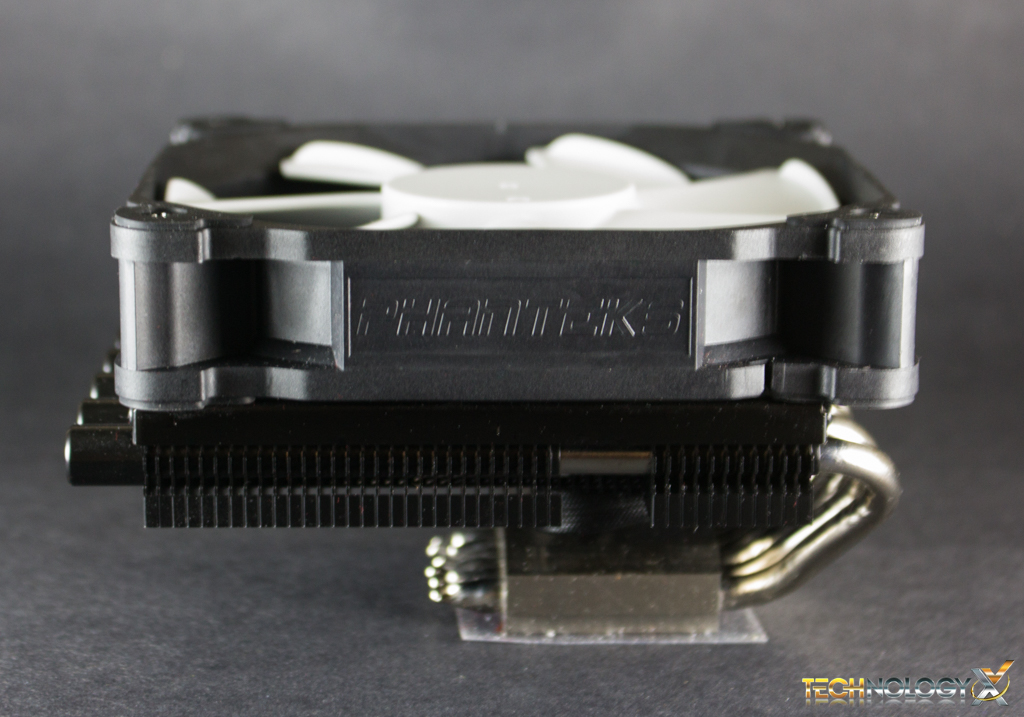 At the edge of the heat-sink we’ll see that Phanteks’ has capped off the tips of the heat-pipes with an aluminium shrouding that is also anodized black as the rest of the heat-sink, just like on the PH-TC14S.
