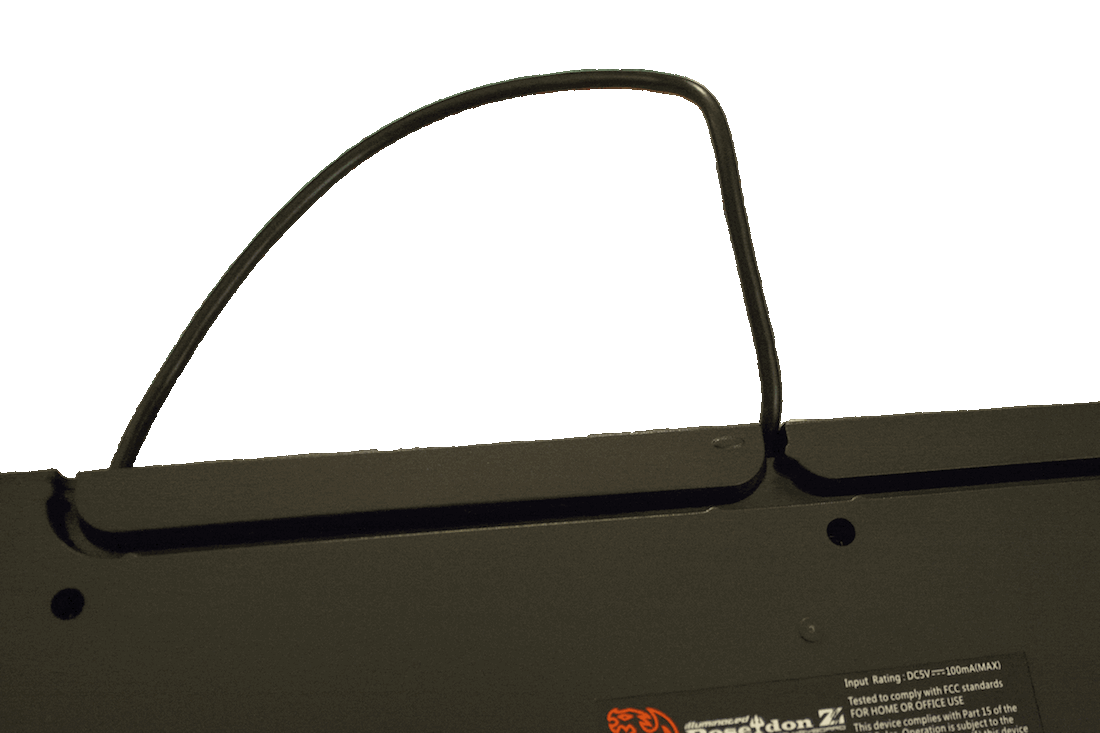 One final useful feature of the Poseidon keyboard is a tiny groove extending both left and right where you could feed the USB cable through. Besides giving you cord management options, the groove could potentially protect the USB cable by preventing it from wiggling from side to side. I do have one complaint with this groove though. It feels like you have to really push the (rather thick) cord down into the groove in order to get it to stay inside, and in the process may end up weakening the connection between the USB cable and the keyboard.