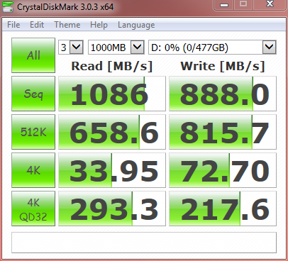 How awesome is this to see right off the bat? With write speeds reaching 1025 MB/s and read speeds of up to 1078 MB/s, this drive is incredible!