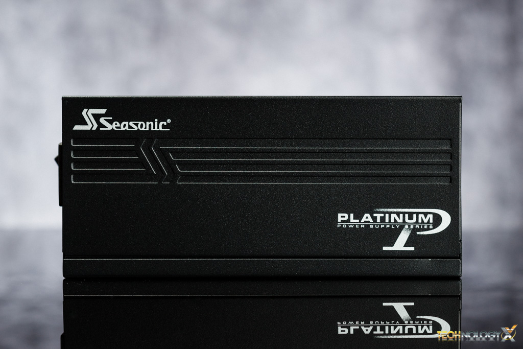 Now we take our first look at the Seasonic Platinum SS-1200XP3 1200W PSU! As you can see it has the standard intake fan grill although the grill has nice looking silver decal to it.