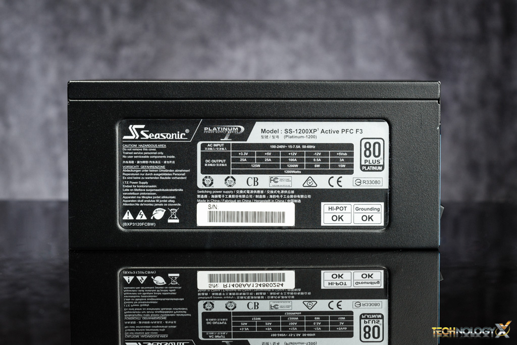 Now we come to the side that is similar to every PSU we have worked with. Here we have all the basic information from compliance, certification, serial number and the output of the rails. This leads us to the next part of this discussion.