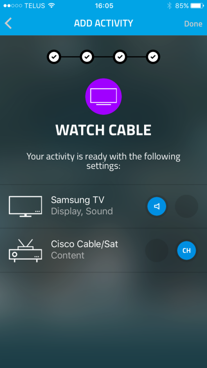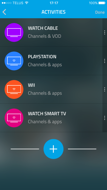 Once you have all your devices connected this is where you will start making “Activities” For this review we have made four as shown below.
