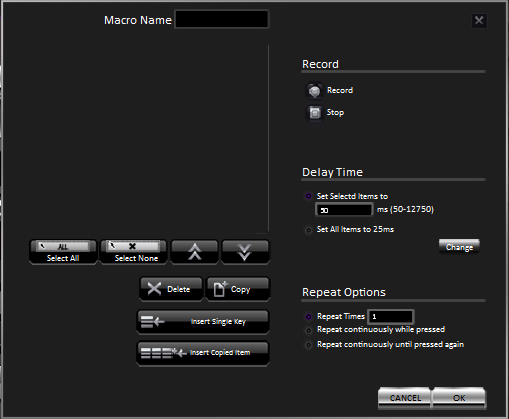 The macro’s tab is a little hard to read and the writing needs to be enlarged if they do an update, as we had to squint to read it properly. But the macro’s are individually nameable and programmable in every way you would expect them to, delays, repeats, etc.