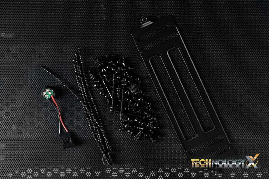 Included with the case are a Ziploc bag of screws, zip ties, and a speaker for your motherboard. These were located in a 3.5″ HDD slot as with most cases.