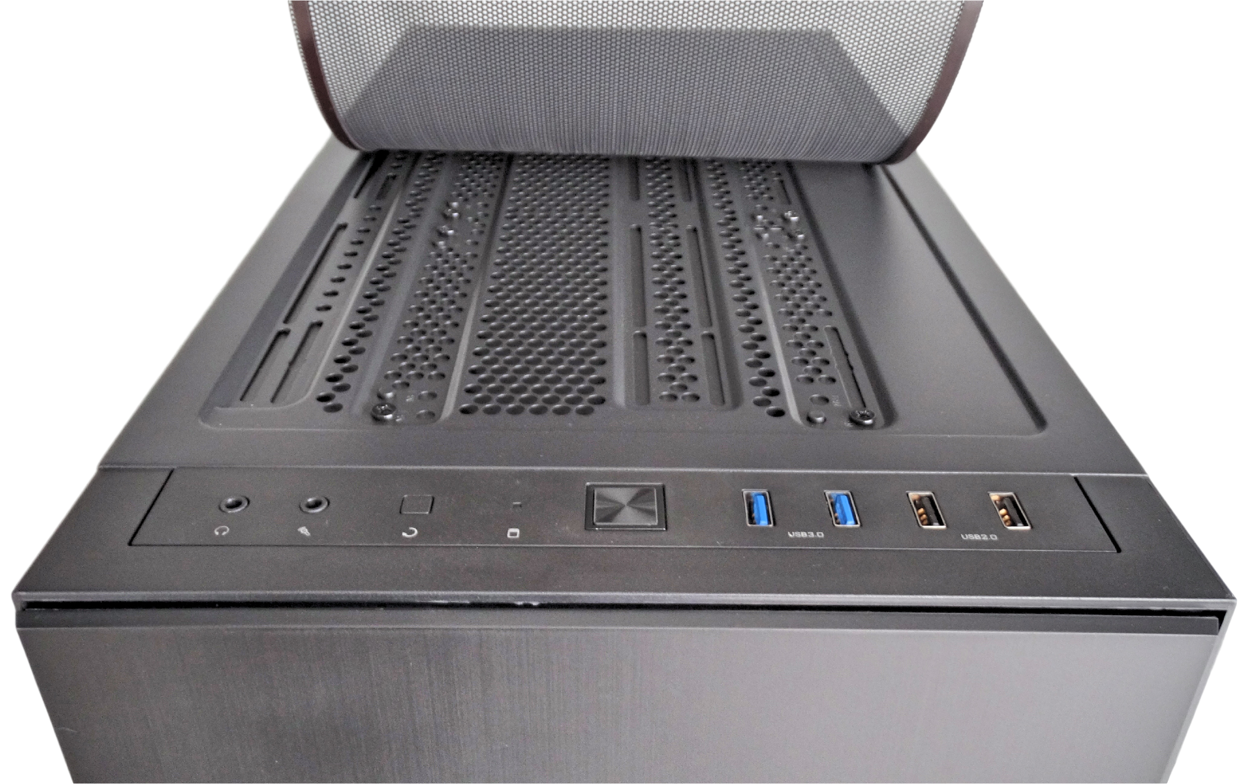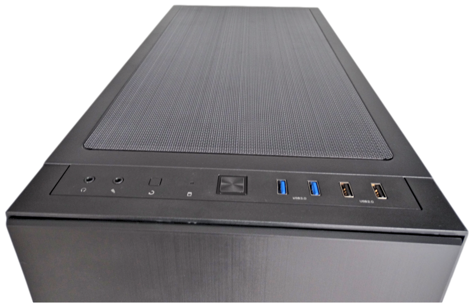 As you move up to the top of the front panel you’ll notice the power button centered on the top, t it’s left the microphone and headphone jacks and a reset button. We had a little issue with the headphone jack as when we plugged in we only had sound in the right-ear we had to pull it back slightly to get the proper sound. We assume this is just an individual error and don’t think is indicative of Thermaltake’s quality. To the right of the power button is where you’ll find your two USB 2.0 & 3.0 plugs.