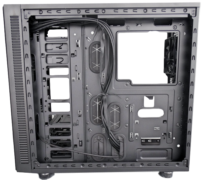 Opposite the window panel is a full steel panel, it’s heavy. On the inside of the panel there is more sound dampening padding. A quick look on the inside and you’ll see that Thermaltake has given the F31 more than enough stand-off so your cables aren’t pushing back on the panel when you close it.