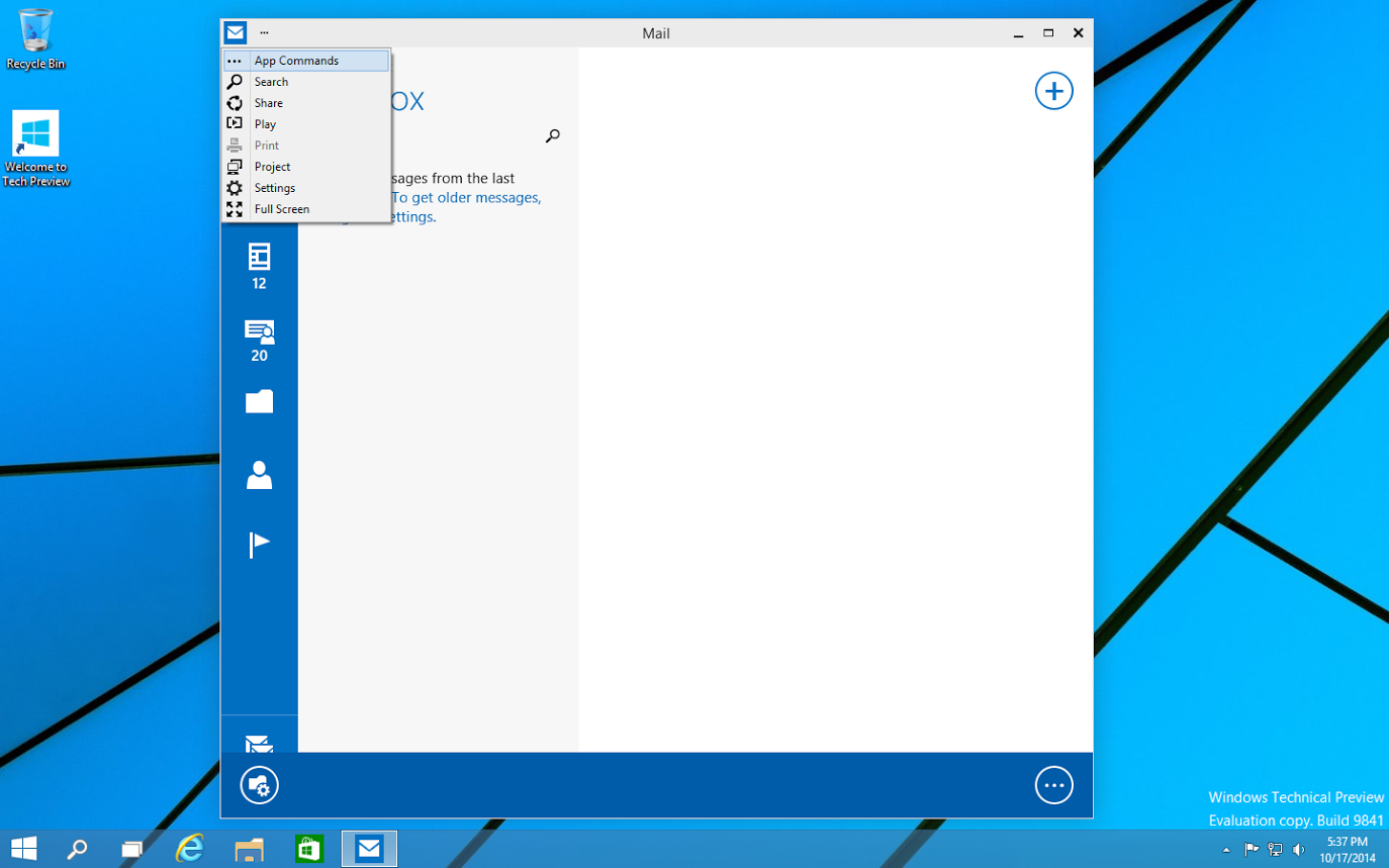 In Windows 10 Microsoft is changing this by finally allowing Modern Apps to run in windowed mode and adding traditional Minimize, Maximize and Close buttons to them as well as a menu button which provides quick access to App Commands and other functions.