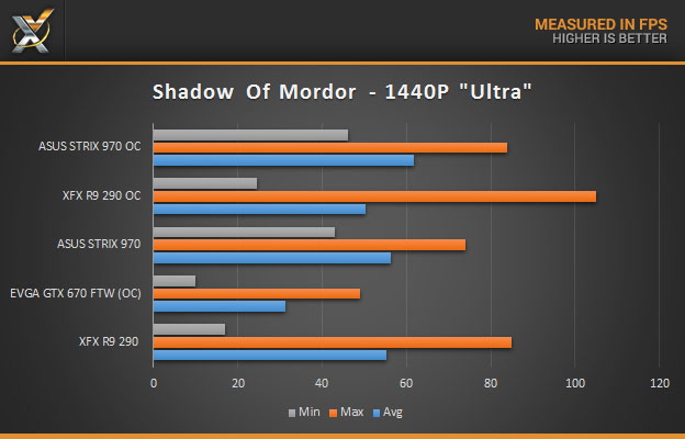 Monolith’s latest game based in the Lord of the Rings universe has gotten a lot of well deserved attention recently. It’s an open world game that features advanced AI and high-resolution textures. So, it should be a good test for our XFX R9 290. For our tests we’ll be running it at both 1080p and 1440p at the “Ultra” preset.