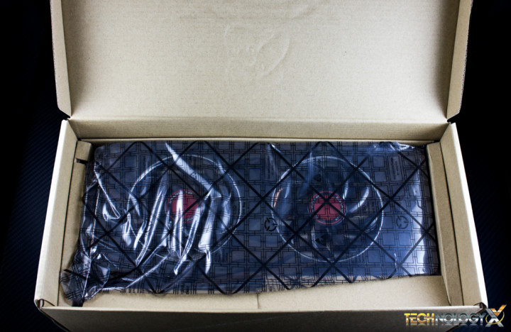 After removing the accessories, we’ll find the card itself, packaged neatly and wrapped in the standard anti-static bag. It is worth noting that upon removing the card from the bag, you’ll want to avoid placing the card on top of it, as the outer coating of these bags can sometimes be dangerous to components such as graphics cards and motherboards.
