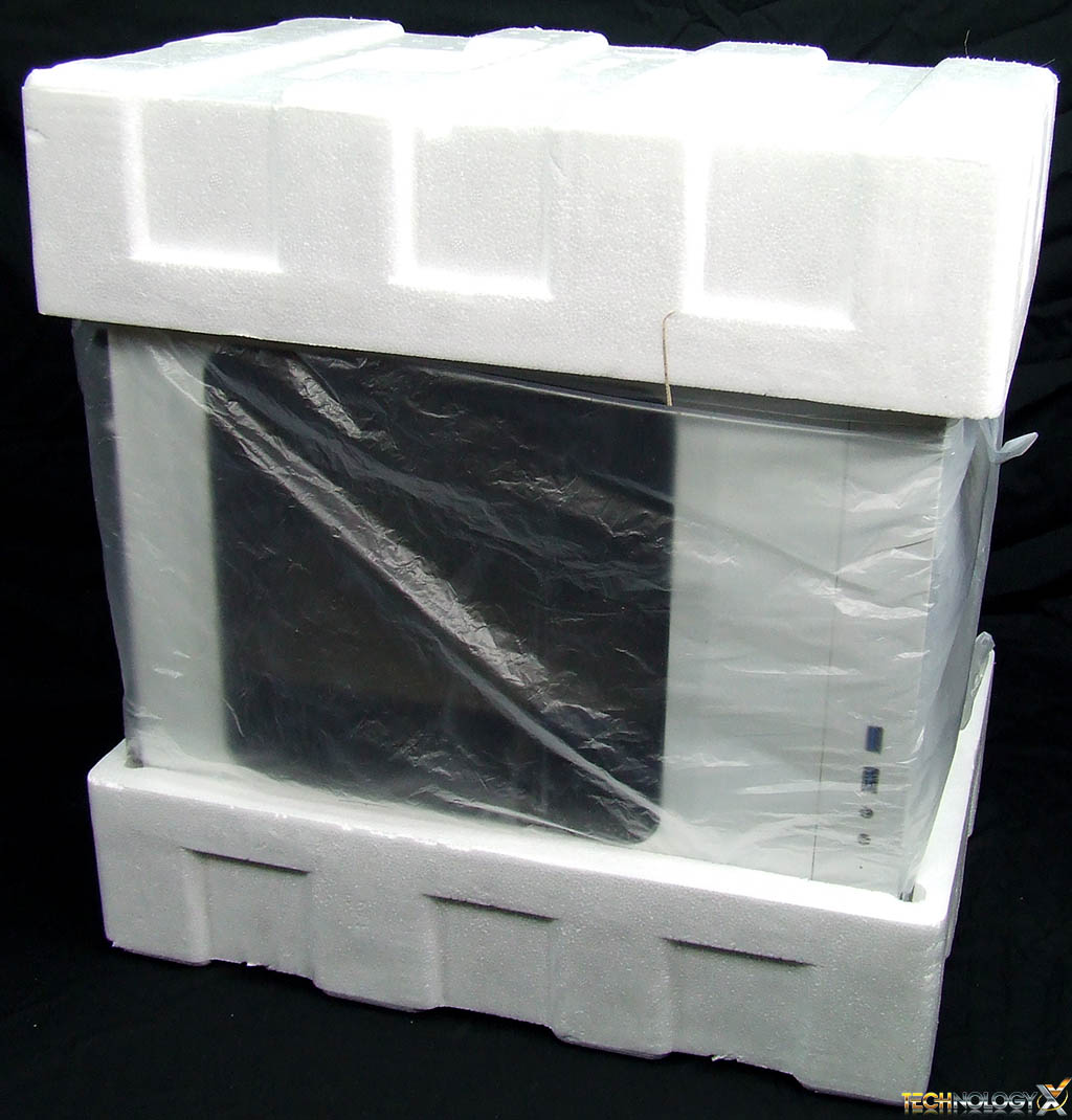 The case comes packaged styrofoam end caps and wrapped in plastic for protection during shipping.