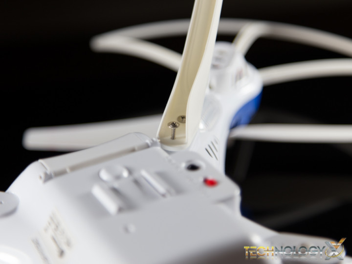 The Swann Xtreem Gravity Pursuit does require a little bit of installation at first, but it isn’t too difficult. The first thing that is required is to install the prop guards. To do this, flip the drone upside down and unscrew the rotor guards. Next, pull the white packaging filler to allow for the prop guard to be installed. Then insert the prop guard with the concave section facing upwards, as if they are holding the propellers. Then take two of the additional screws and reinstall the motor guards.